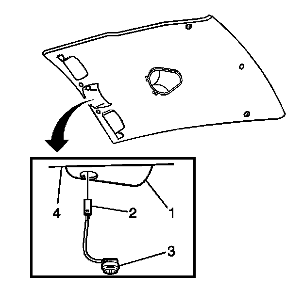 3. Push the microphone (3) into the overhead console (1) until the retaining tabs (4) are fully engaged.