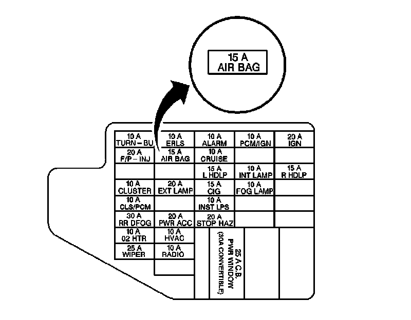 IMPORTANT: With the AIR BAG Fuse removed and the ignition switch in the RUN position, the AIR BAG warning lamp illuminates. This is a normal operation and does not indicate an SIR system malfunction.