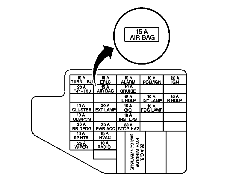 6. Install the AIR BAG Fuse to the LH IP wiring harness junction block.