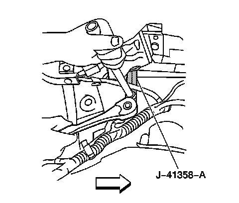 2. Use the J 41358-A in order to install the torque rod to the adjustment notch on the hinge.