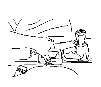 1. Install the front floor console by guiding the shift boot over the optional shift knob and over the park brake handle.
