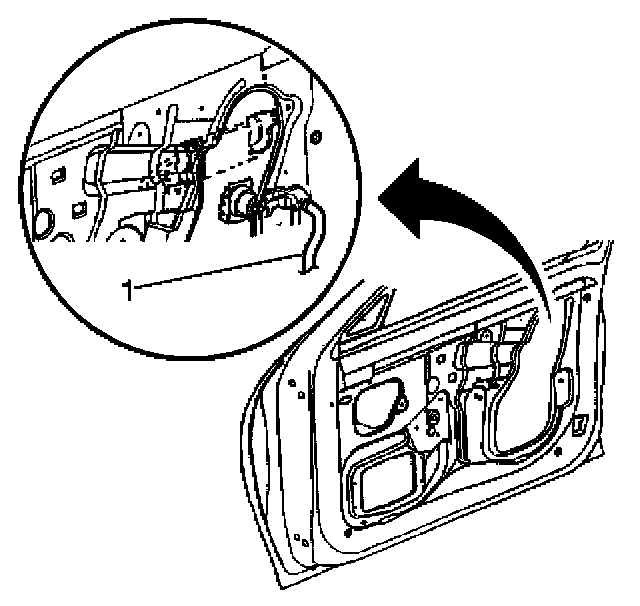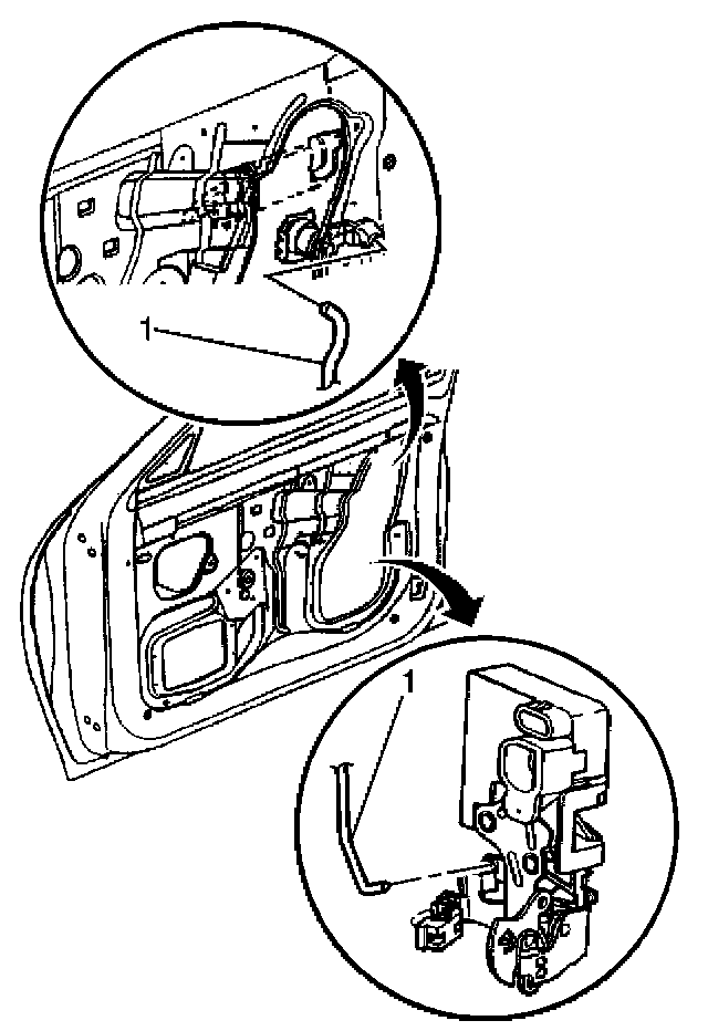 5. Pull the lock cylinder rod in order to disengage the rod (1) from the door lock assembly.