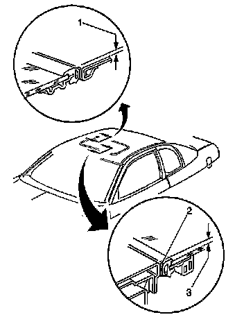 * Adjust the front of the sunroof window (2) flush to 1 mm (0.04 in) below the top surface of the roof panel.