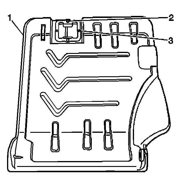 4. Remove the latch striker (3) from the seat back frame (1).