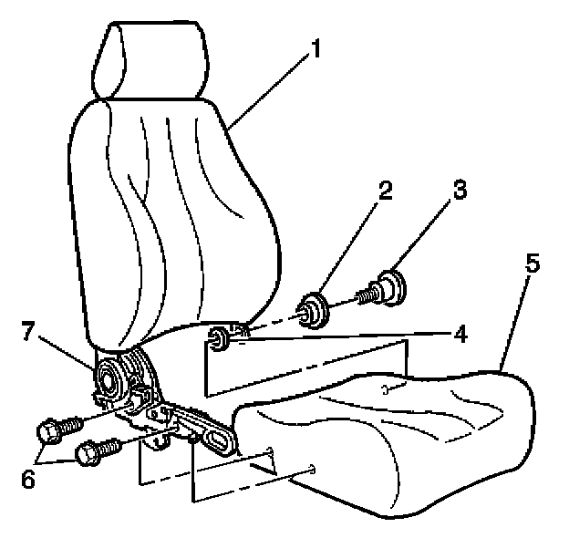 11. Remove the seat back (1) from the seat cushion (5).
