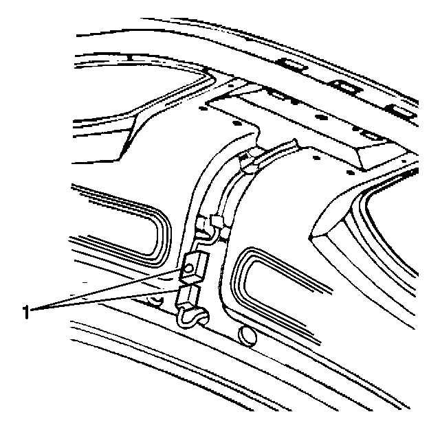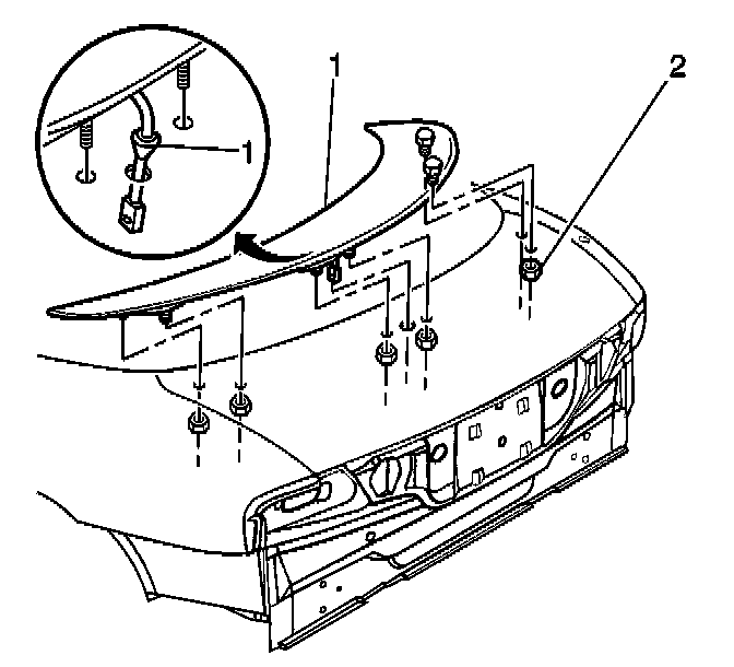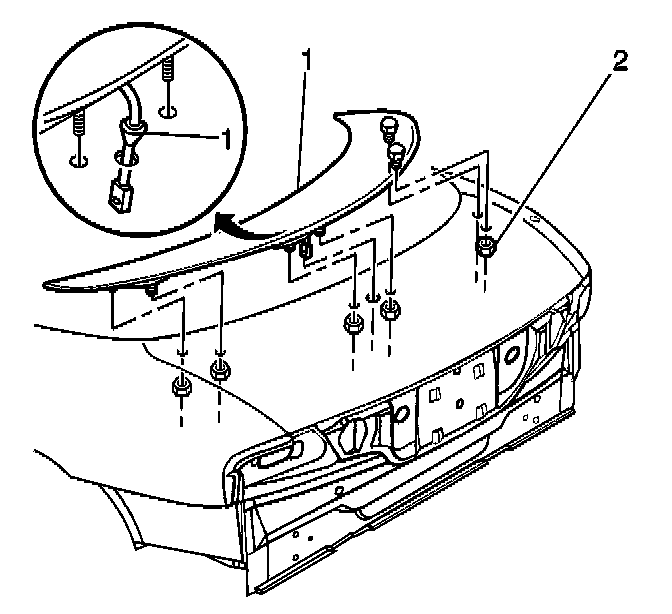 4. Disconnect the wire harness connector (1) from the rear compartment lid spoiler.
