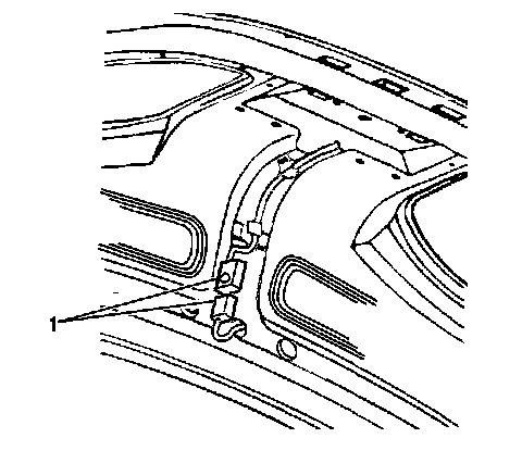 4. Disconnect the wire harness connector (1) from the rear compartment lid spoiler.