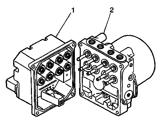 ^ Do not pry apart the EBCM (1) from the BPMV (2) using a tool. Be careful not to damage seal on the EBCM or the mating surface of the BPMV.