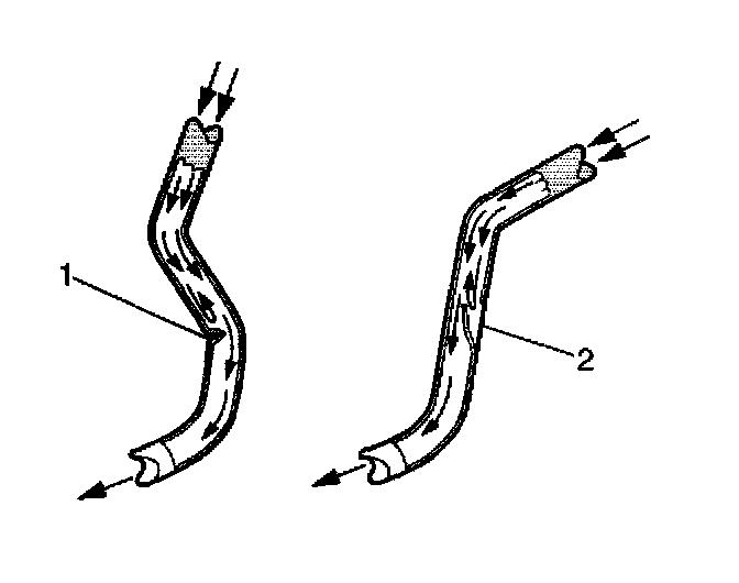 7. If any of the flexible brake hoses were found to have soft spots (2), then the identified flexible brake hose, or hoses require replacement.