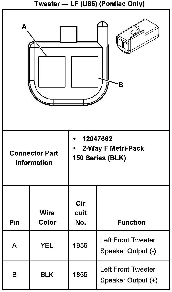 Tweeter - LF (With RPO Code U85):