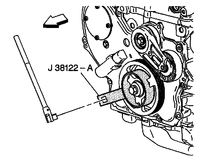 3. Use J 38122-A to prevent the crankshaft from rotating while tightening the crankshaft balancer bolt.