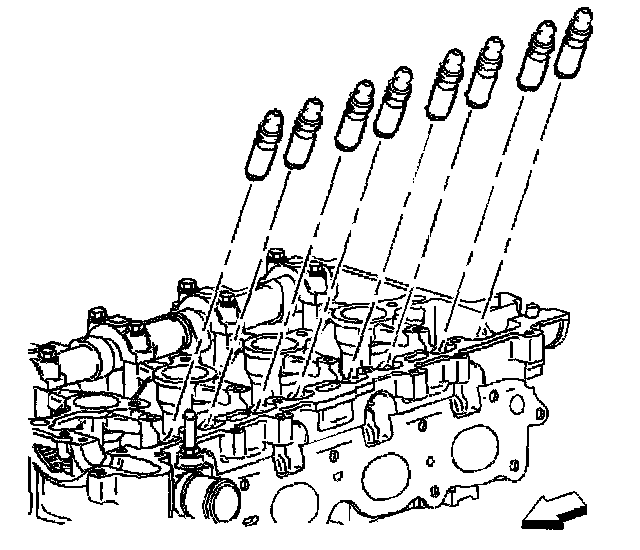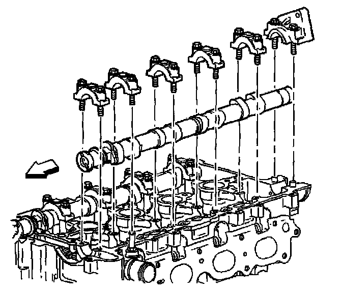 Intake Camshaft, Follower, and Adjuster RemovalImportant: Remove each bolt on each cap one turn at a time until there is no spring tension pushing on the camshaft.