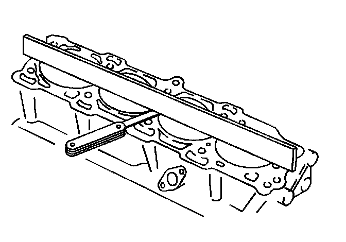 8. Use a straight edge and a feeler gage to check the deck surface for flatness. Carefully machine minor irregularities. Replace the block if more than 0.254 mm (0.010 in) must be removed.