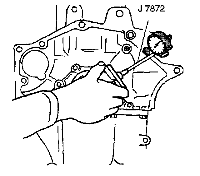 13.2. Hold the gage plate flat against the crankshaft flange.