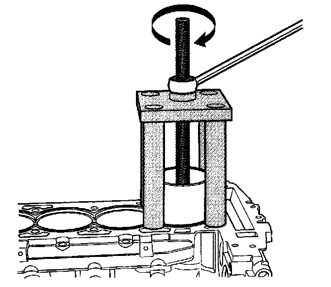 9. Rotate the nut clockwise in order to remove the cylinder bore sleeve.