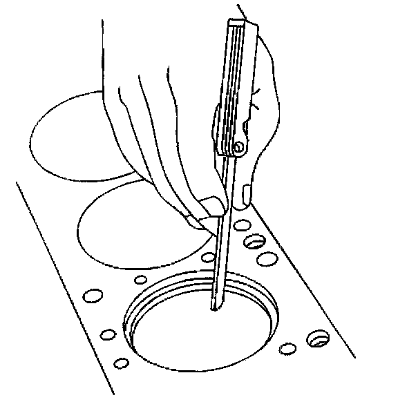 6.1. Place the piston ring in the area of the bore where the piston ring will travel (approximately 25 mm or 1 in down from the deck surface). Be sure the ring is square with the cylinder bore by positioning the ring with the piston head.