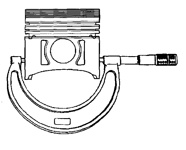 5. With a micrometer or caliper at a right angle to the piston, measure the piston 14 mm (0.570 in) from the bottom of the skirt.