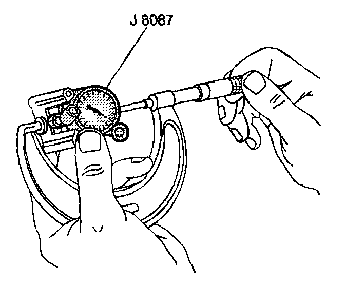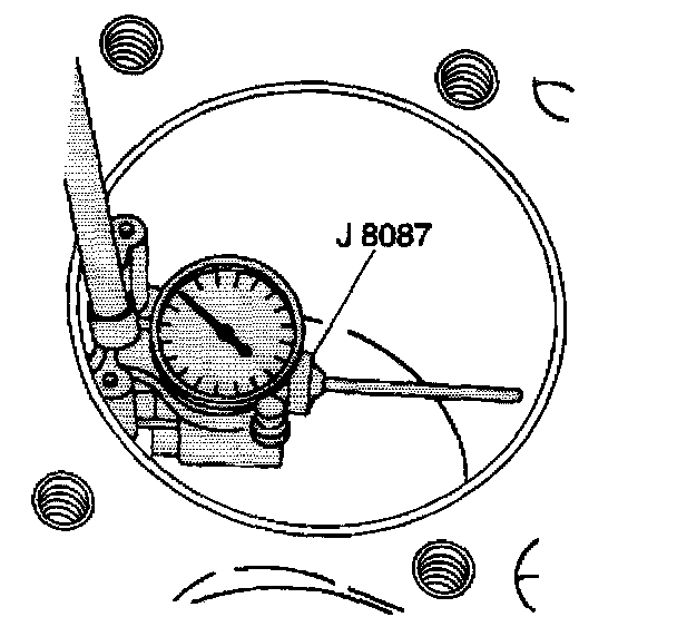 3. Use a bore gauge and measure the cylinder bore diameter. Measure at a point 64 mm (2.5 in) from the top of the cylinder bore.