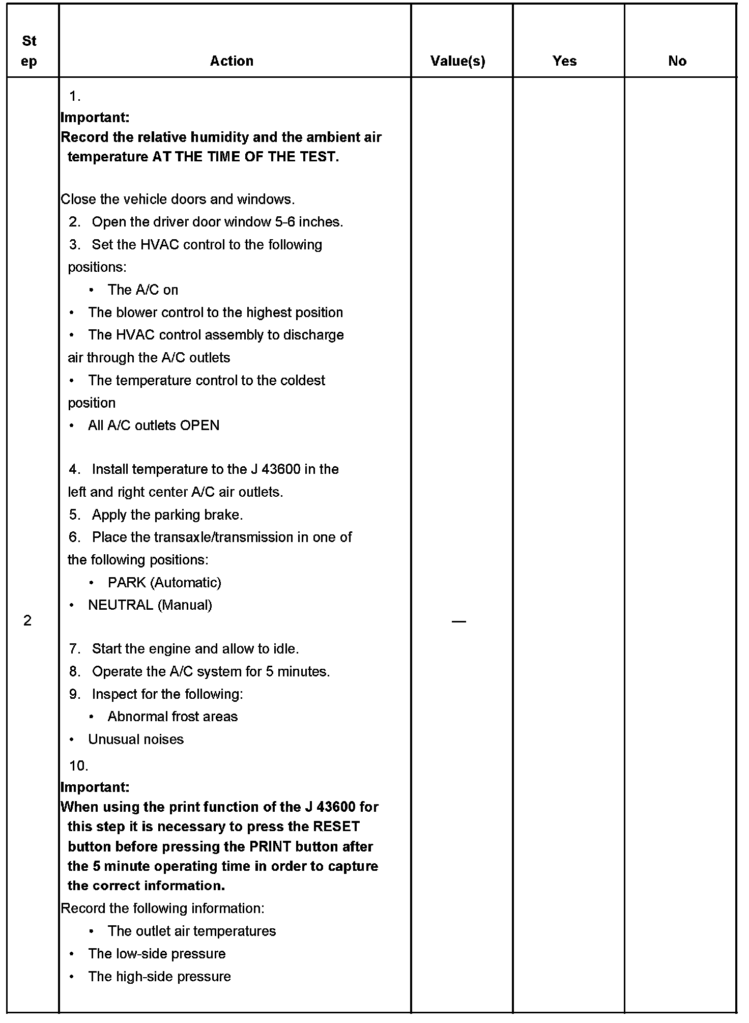 1. This step determines if the A/C system has at least the minimum refrigerant charge required to operate the system without damage.