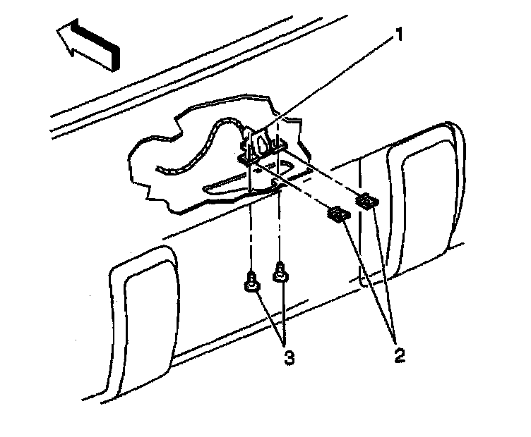 3. Remove the license plate lamp (1) from the rear bumper fascia.
