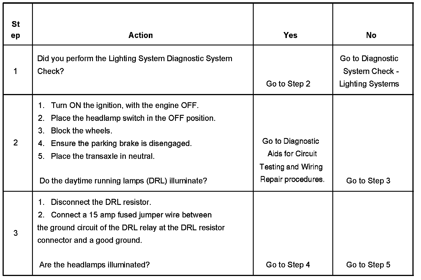 Daytime Running Lamps (DRL) - Inoperative