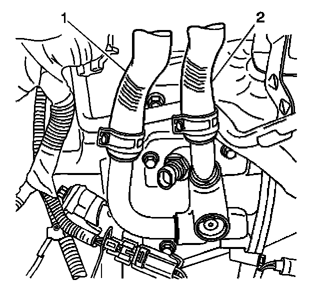 1. Connect the inlet heater hose (2) to the inlet port of the heater core.