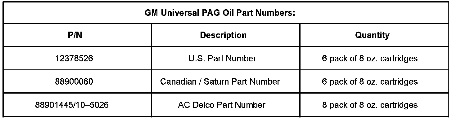 The PAG oil referenced in this bulletin is formulated with specific additive packages that meet General Motors specifications and use of another oil may void the A/C systems warranty.