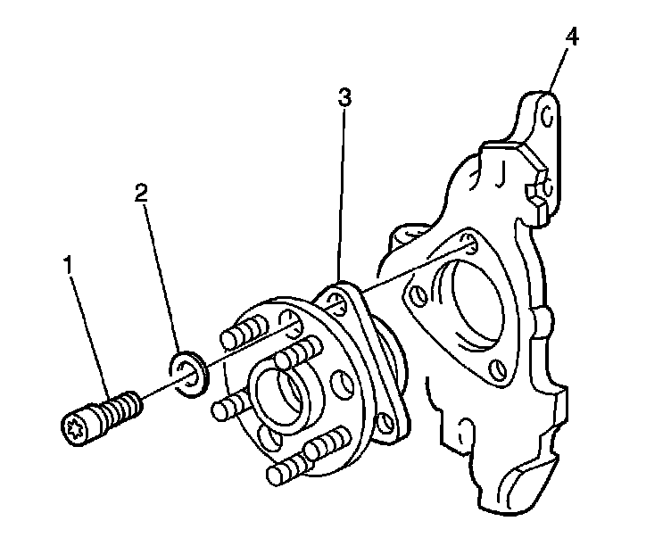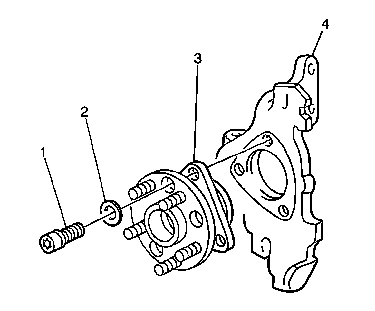 5. Remove the mounting bolts (1) from the hub and bearing assembly (3).
