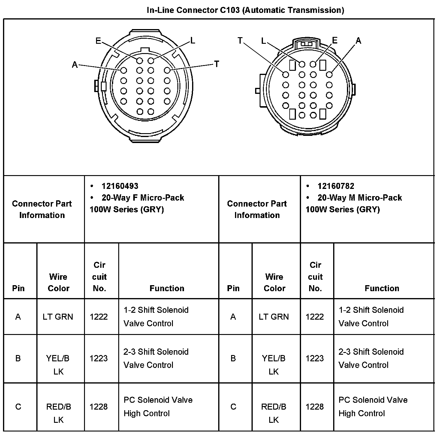 In-Line Connector C103 (Automatic Transmission) Part 3:
