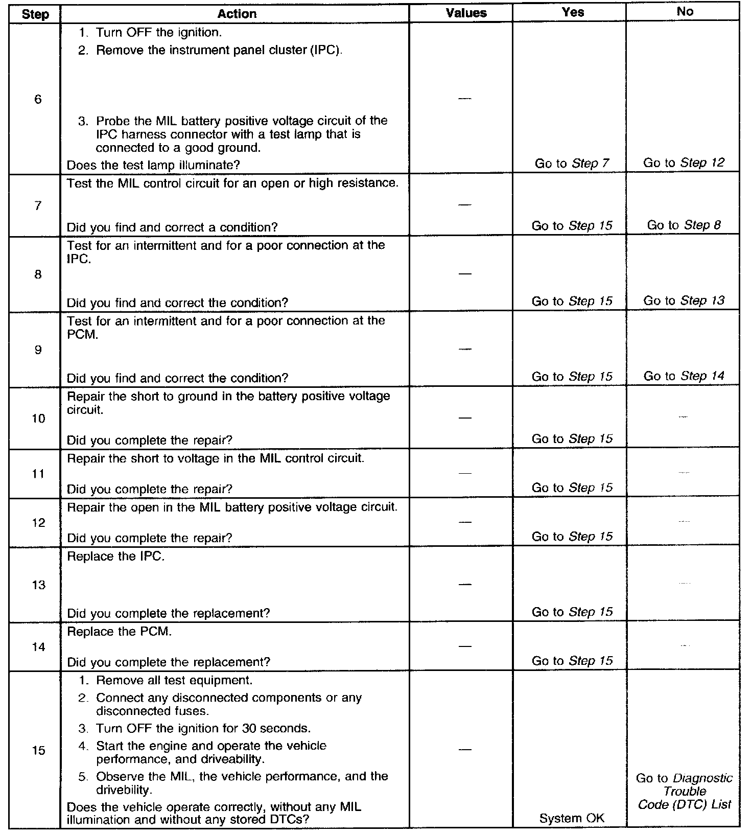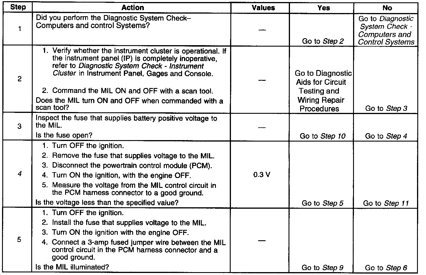 4. This step tests for a short to voltage on the MIL control circuit. With the fuse removed there should be no voltage on the MIL control circuit.