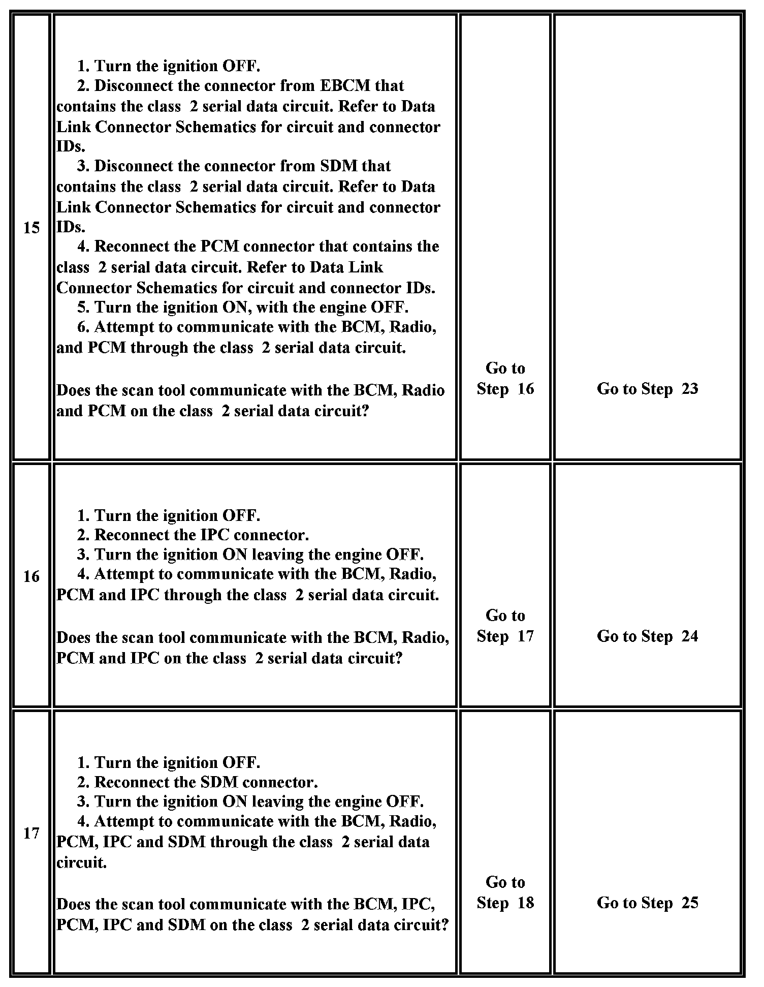25. This test analyzes the condition of the wiring and connectors in the class 2 serial data circuit of the SDM.