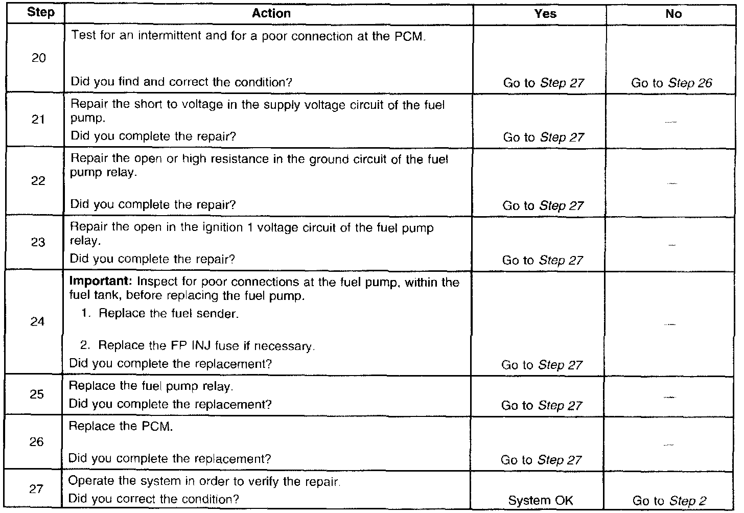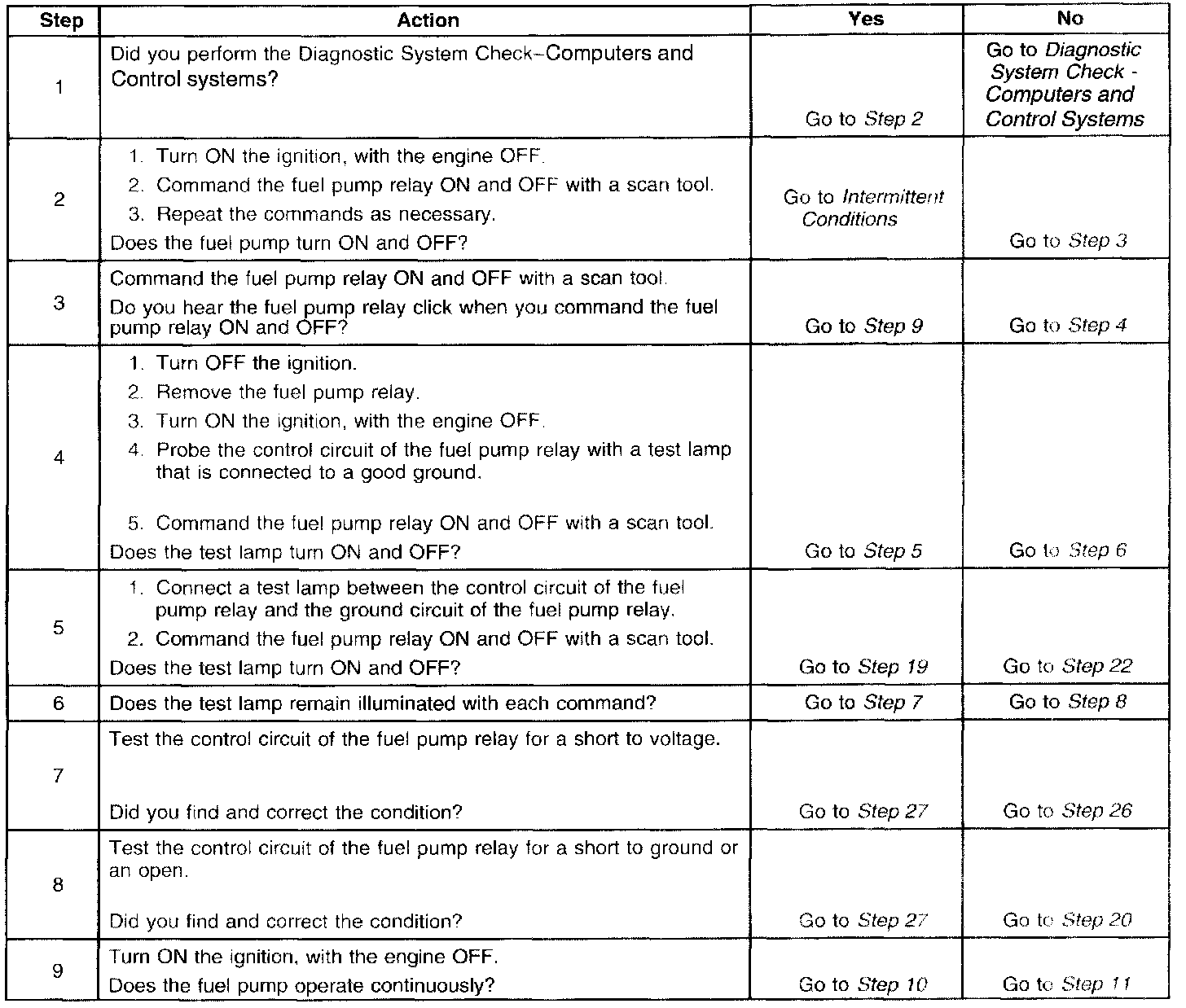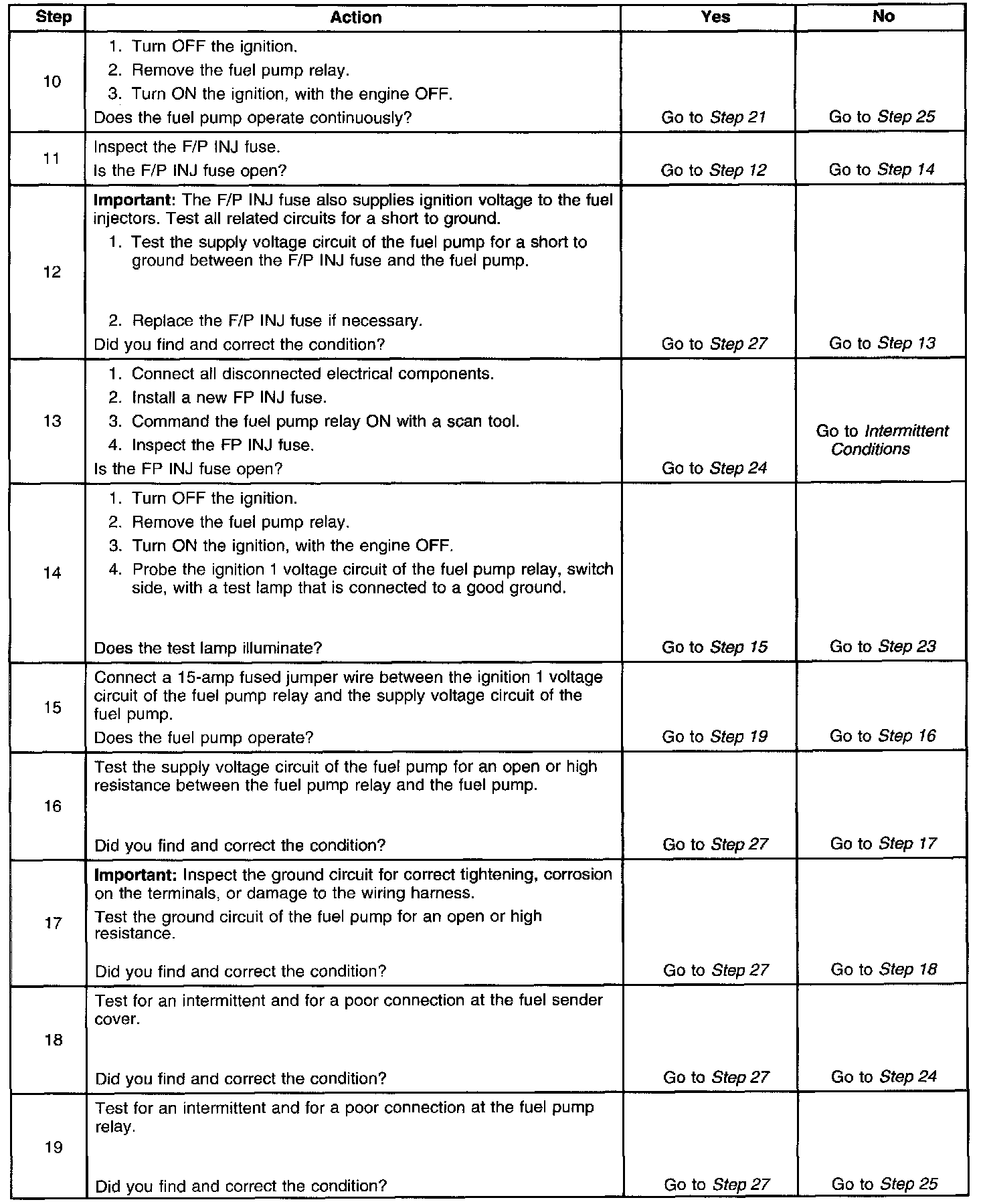 Fuel Pump Electrical Circuit Diagnosis
