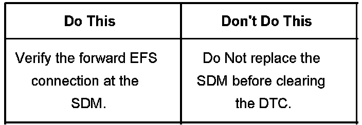 When diagnosing a concern for Supplemental Inflatable Restraint (SIR) light illuminated and Diagnostic Trouble Code (DTC) B0036 set, verify the connection at the Sensing and Diagnostic module (SDM) for the forward auxiliary discriminating Electronic Front-End sensor (EFS). Disconnect this connector and reconnect making sure that you have a proper fit. Clear this DTC and retest prior to replacing the forward EFS.