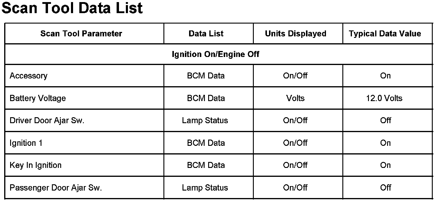 Scan Tool Data List:
