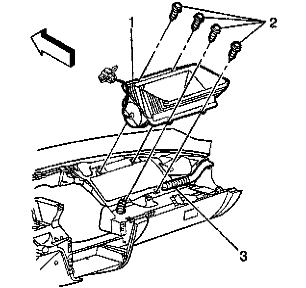5. Remove the mounting bolts (2) from the inflatable restraint I/P module (1).