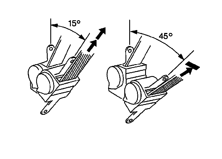 4.3. Ensure that the seat belt webbing can be pulled from the retractor at an inclination of 15 degrees or less and cannot be pulled from the retractor at an inclination of 45 degrees or more.