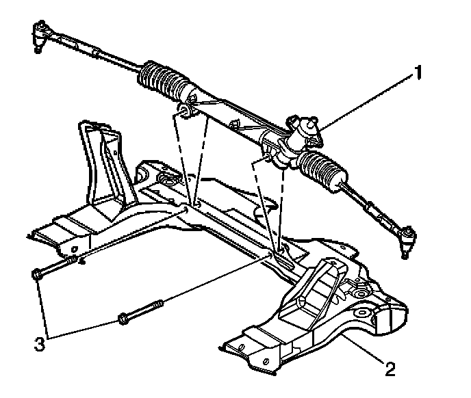 1. Install the power steering gear (1) to the front suspension crossmember (2).