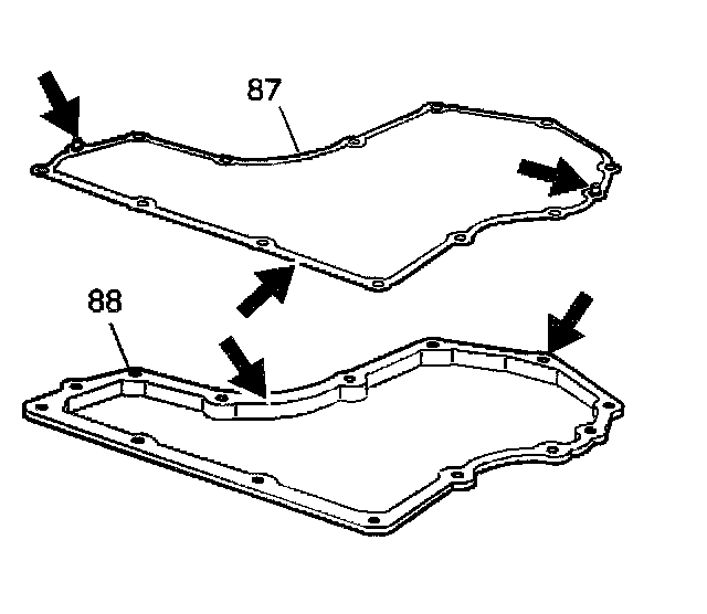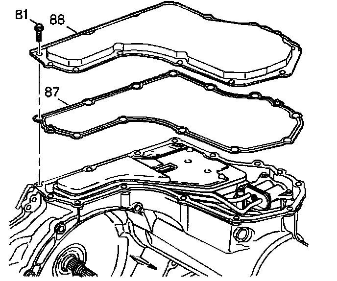 4. Install the gasket (87) and bottom pan (88) onto the transmission case.