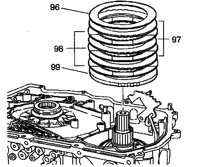 Remove the three 2nd clutch fiber plates (98).
