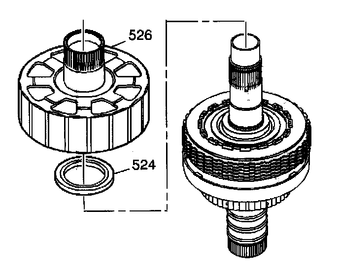 7. Remove the thrust bearing (527) from the reaction carrier shaft and shell assembly (526).