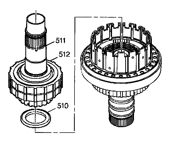 12. Lift up on the input sun shaft (511) in order to remove the input sun shaft (511) and the sprag (512) as an assembly.