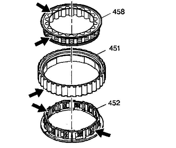 Important: In order to remove the 2nd roller clutch (452), rotate the roller clutch clockwise until indexed with the roller clutch cam (451) ramps.