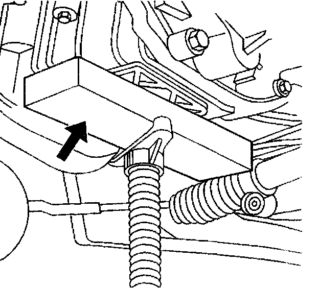 Important: In order to avoid oil pan damage and possible engine failure, insert a block of wood that spans the width of the oil pan bottom between the oil pan and the jack support.