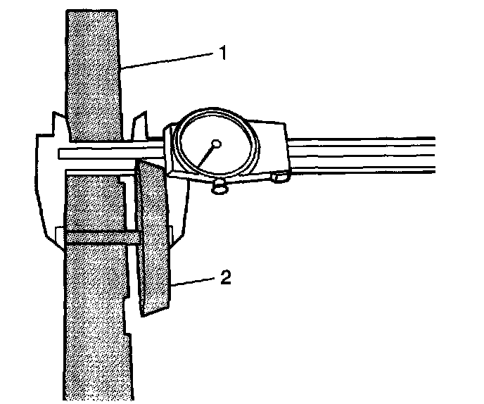 13. Tighten the thumbscrew on the J 44388-1 (2) to retain the J 44388-2 (1) gage rod.