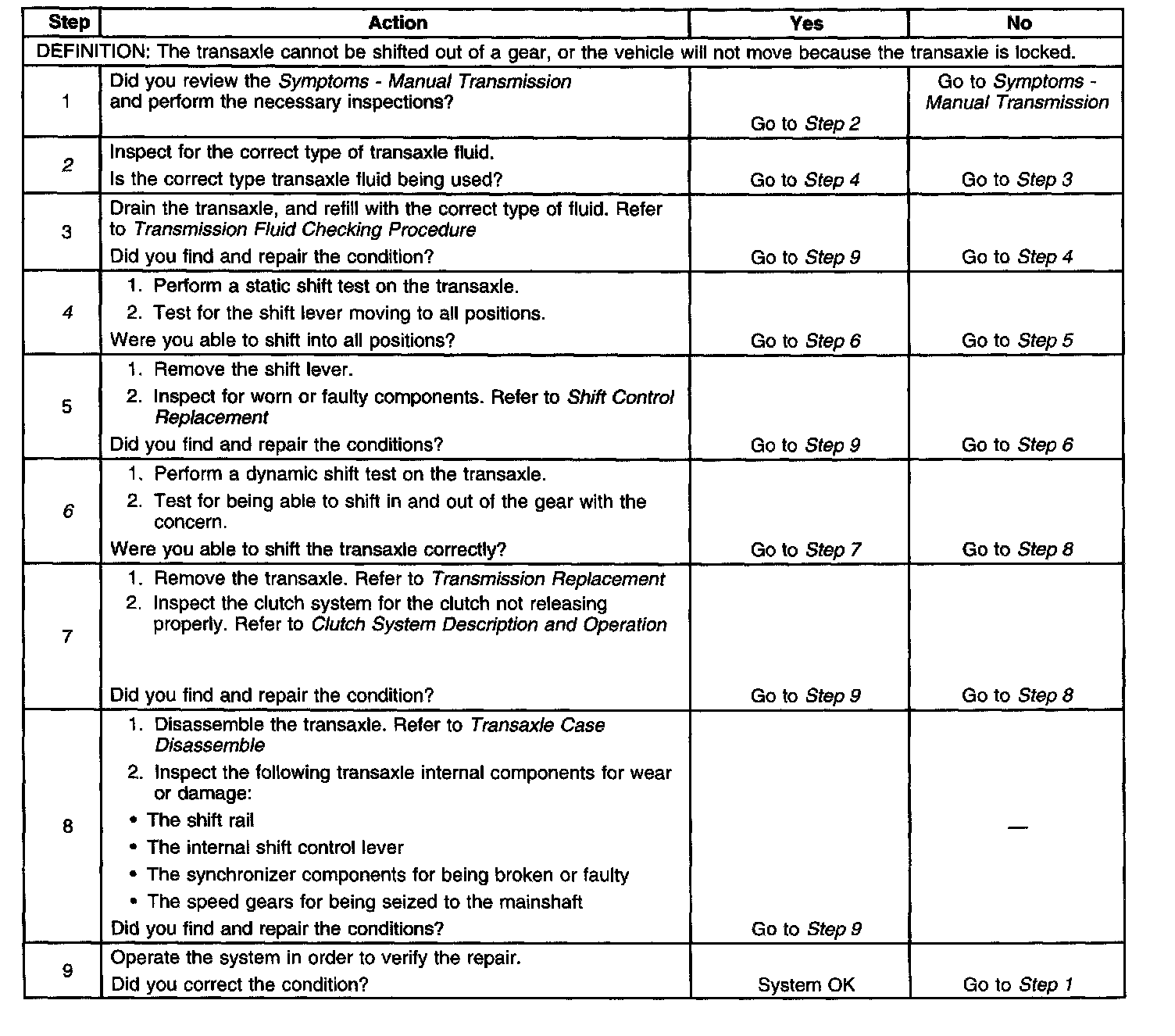 Transmission Locked in One GearSteps 1-9: