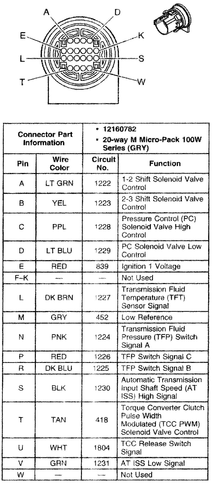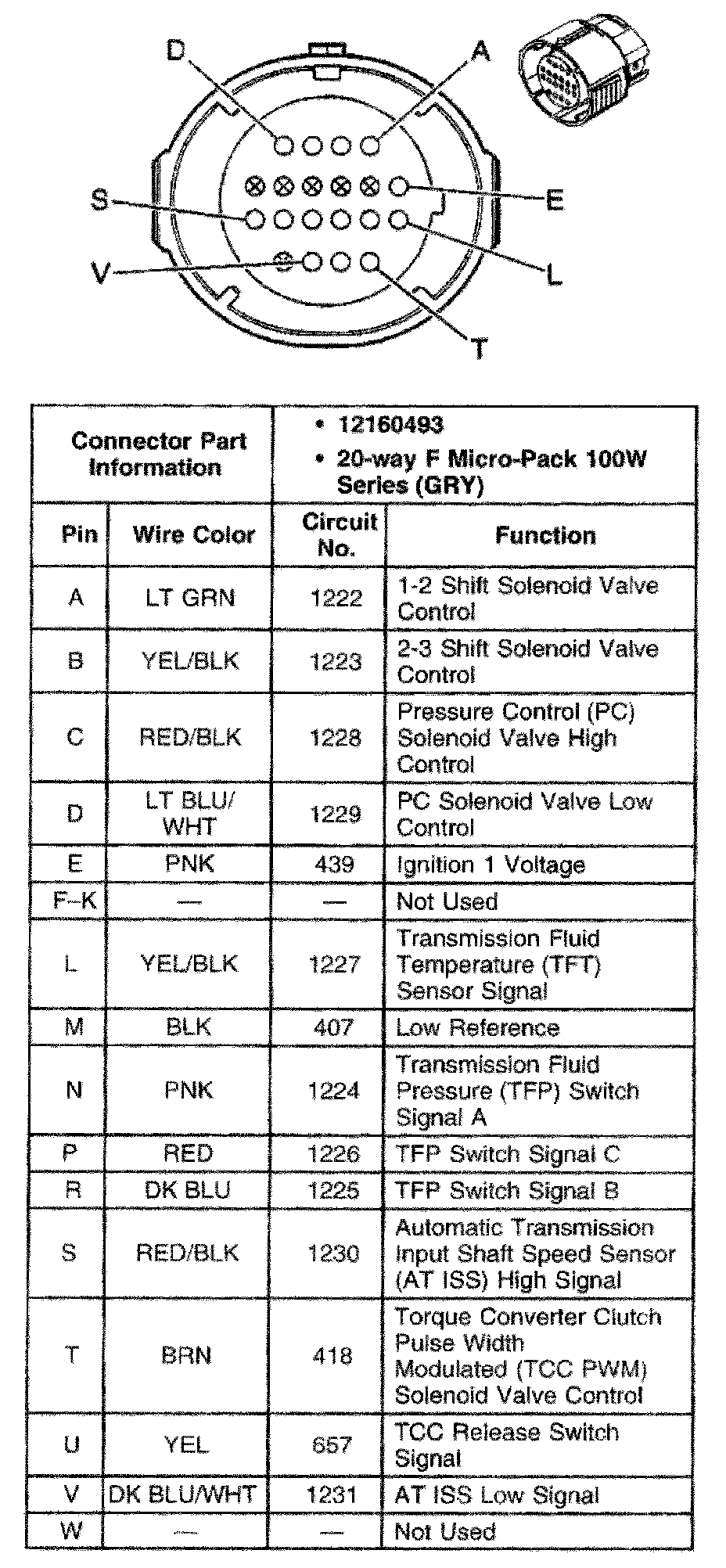Automatic Transmission Inline 20-Way Connector End View (Engine Side):
