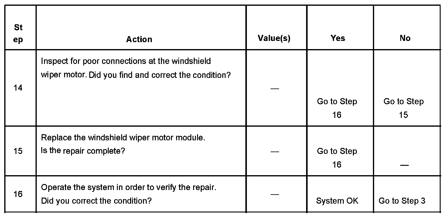 Wipers Inoperative - One or More Modes - Without RPO CD4