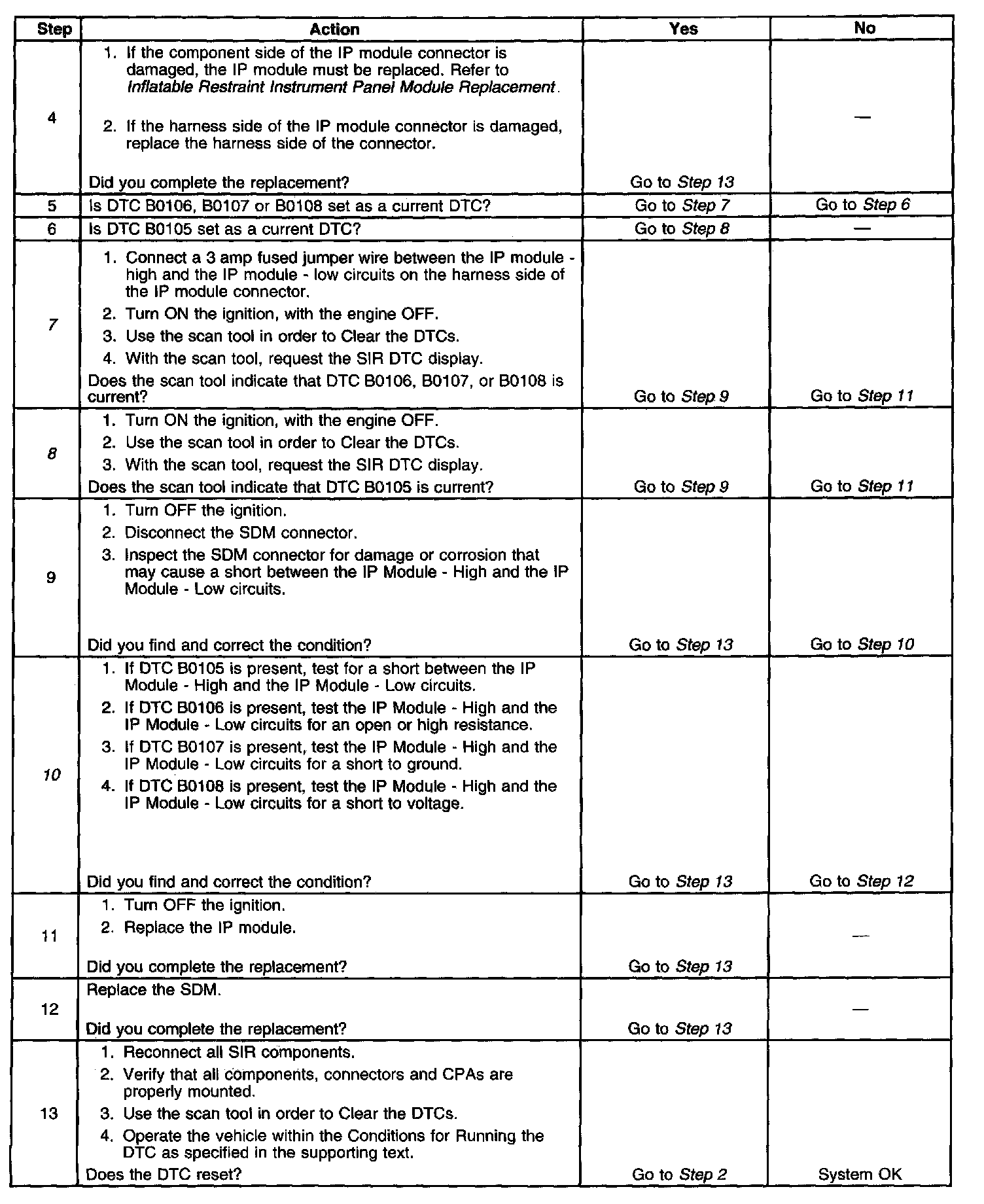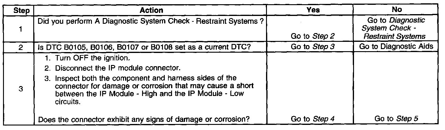 - DTC B0107 will set when the SDM detects a short to ground in the IP module deployment loop.