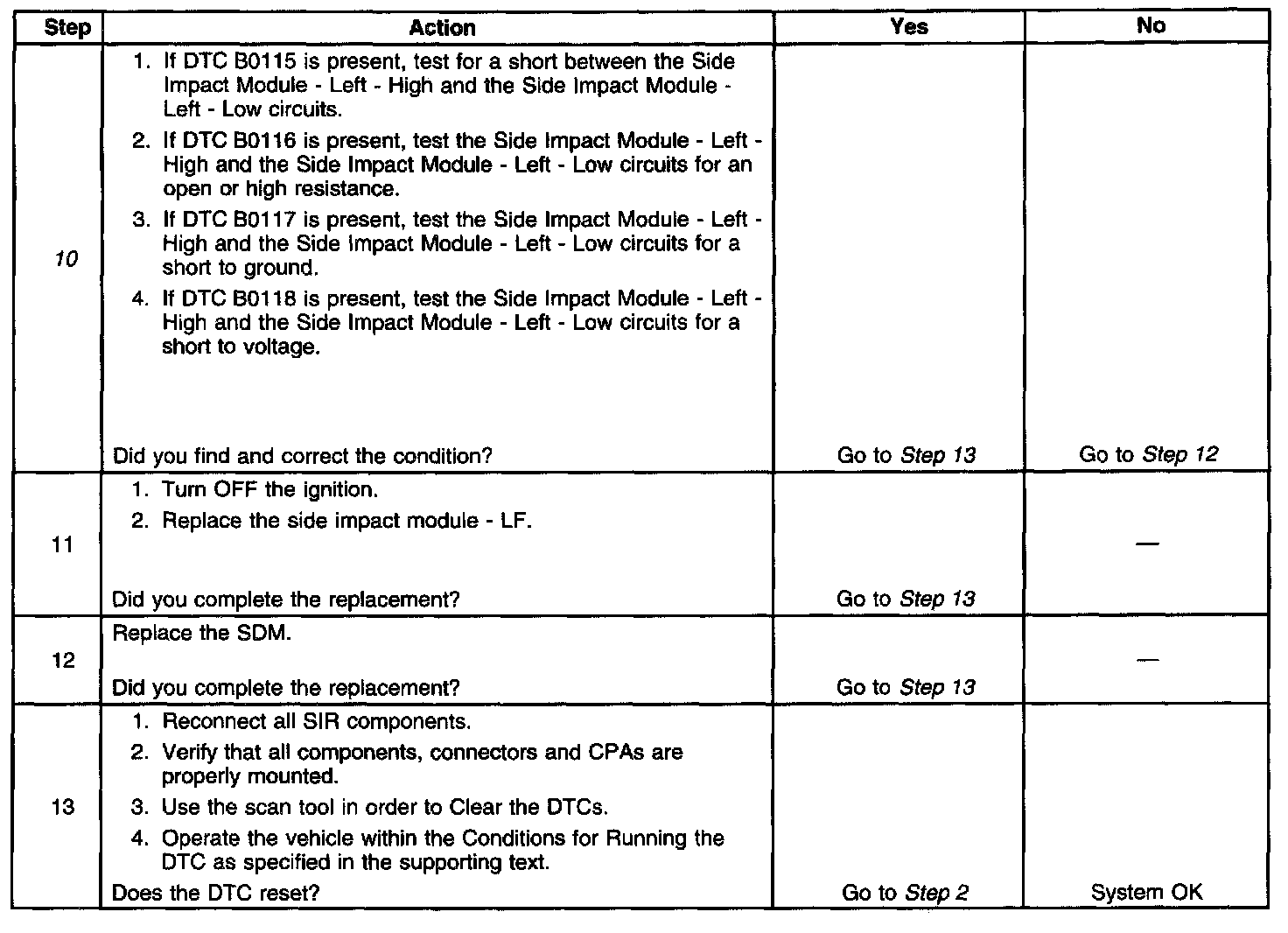 - DTC B0115 will set when the SDM detects a low resistance condition in the side impact module - LF deployment loop.