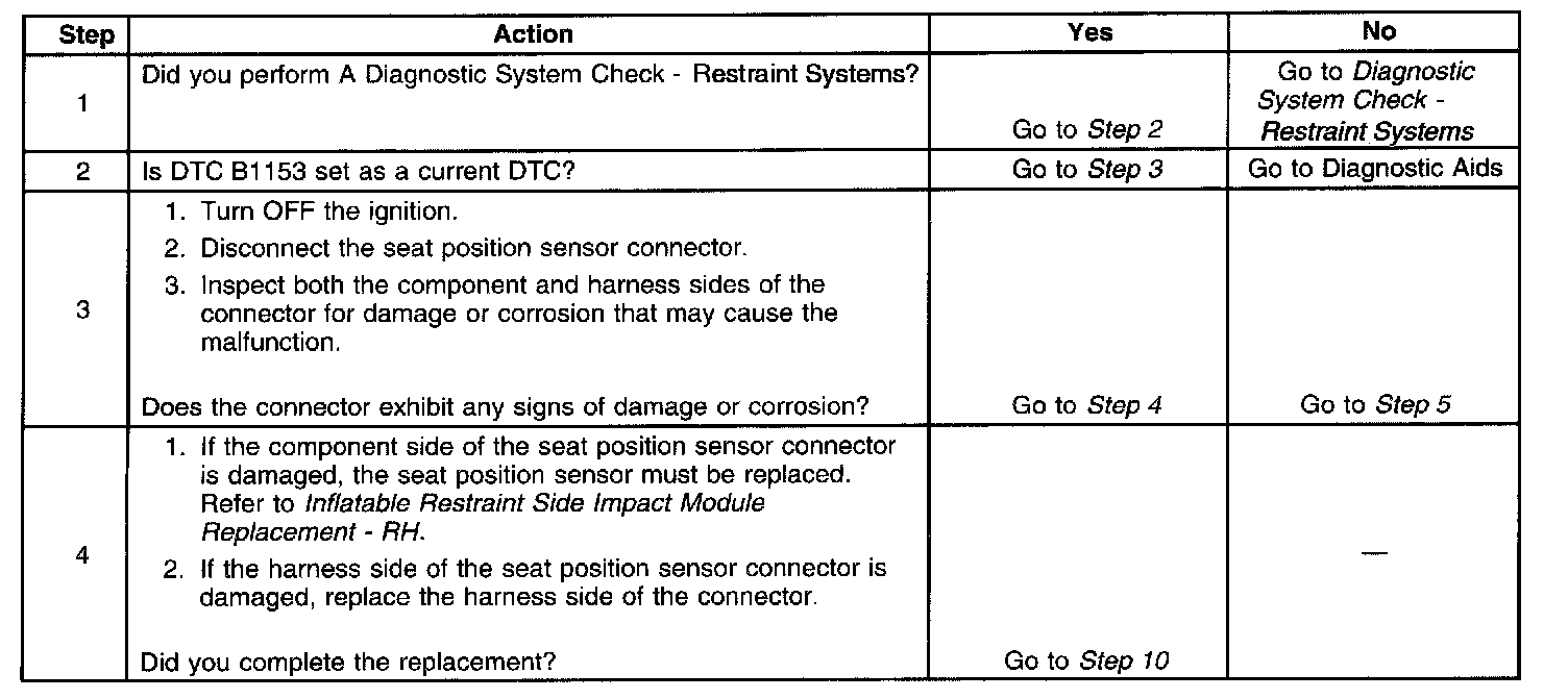 - An open or high resistance in the seat position sensor - high or the seat position sensor - low circuits.